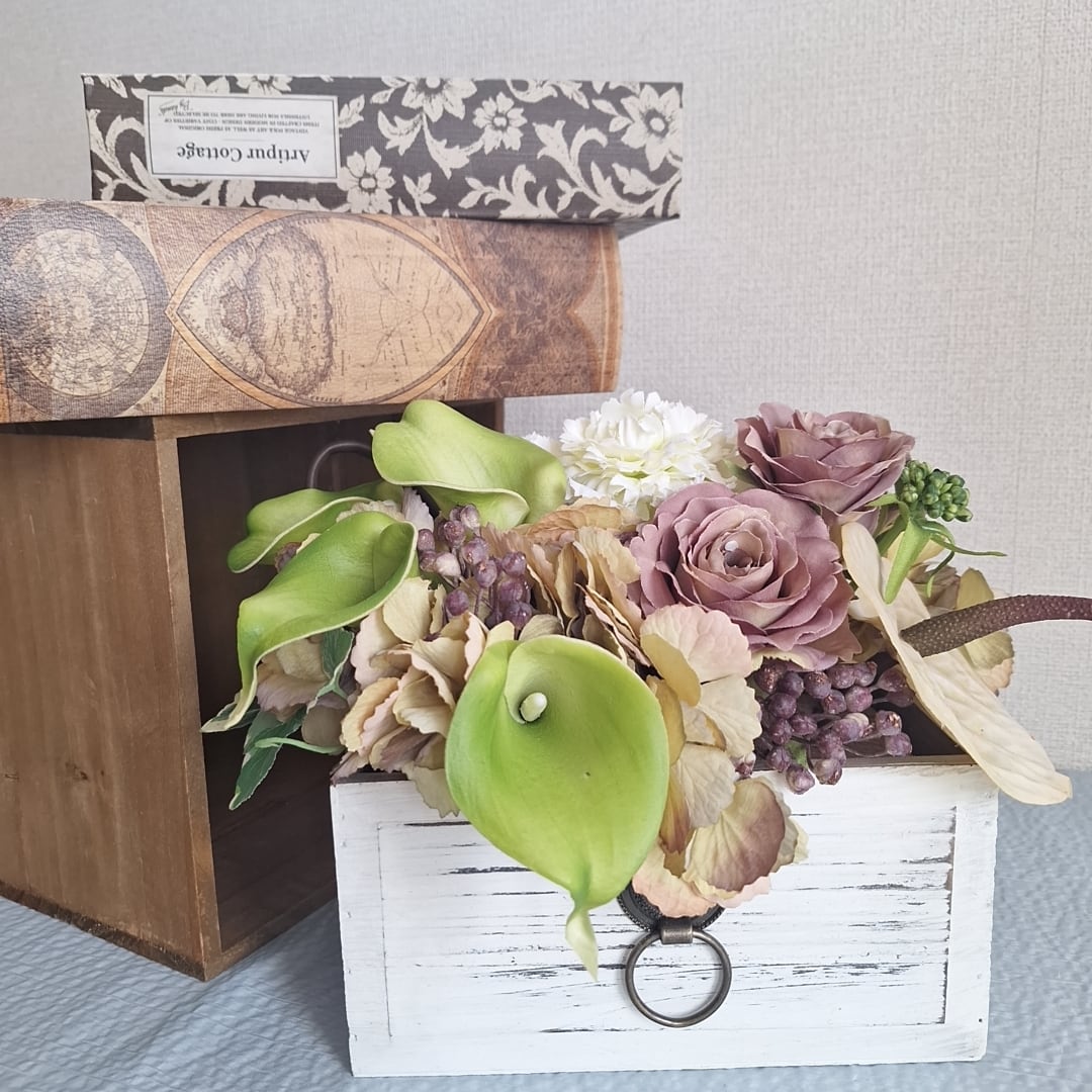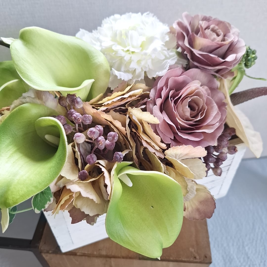 ナチュラルな色味ののアンスリウムとカラーのアレンジ